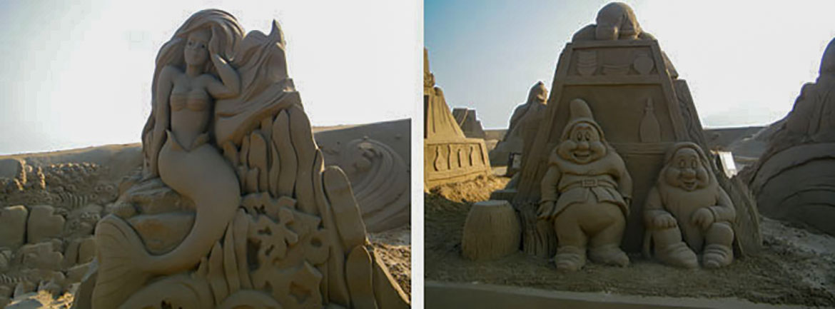 “沙雕故乡、度假天堂”说得就是我们第一个到达的目的地:舟山朱家尖。朱家尖有清新、欢快的--海洋之旅;飘逸、洒脱的--休闲之旅;健康、明朗的--康体之旅。怀着这样的憧憬,放下行李我们迫不及待的想去体验。果然,美轮美奂的沙雕景象,冲击你的视觉体验。走进以迪士尼卡通人物为主题的沙雕乐园里,带你回到孩提时天真时代。现在就用照片跟大家一起分享我们的快乐。
