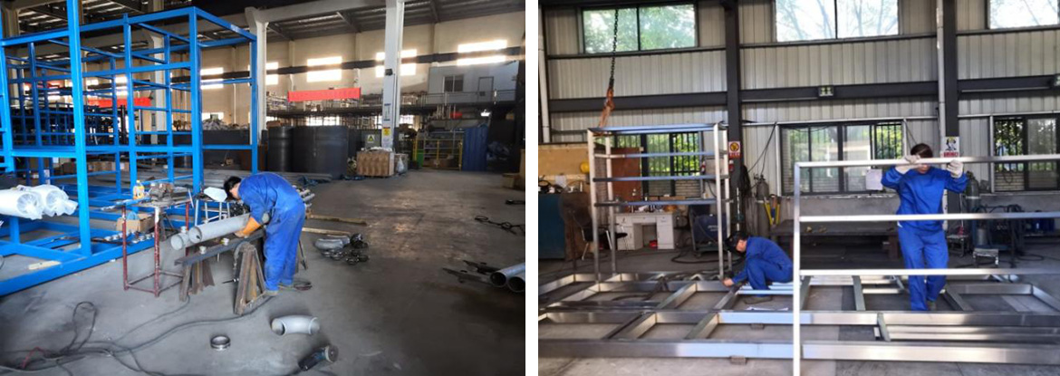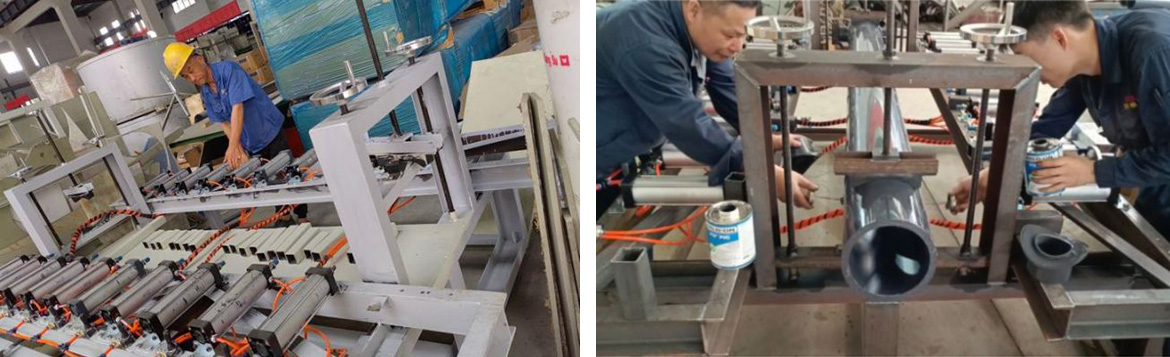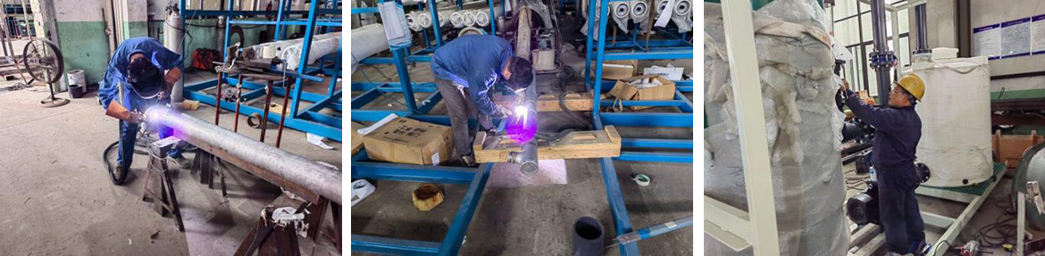 为了提高生产效率及保证产品质量,公司设计开发了生产辅助设备,成功制作了一台半自动化工装设备---膜管组件的组装黏连机,效率提高3到4倍,质量明显改变,生产员工劳动强度大大改善,为此我们点个赞。