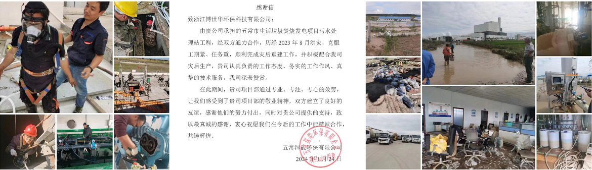1月24日,公司收到了五常深能环保有限公司的“感谢信”,对公司承接的五常生活垃圾污水处理站项目及灾后重建中的优异表现给予了充分的肯定和赞赏,对公司认真负责的工作态度、务实的工作作风,对项目部专业、专注、专心的敬业精神给予了高度评价和真诚谢意。这一份来信,就象冬天里的一把火,点燃了公司2024年的兴旺开端。